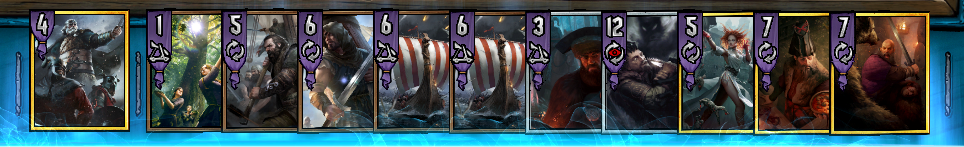 -Raider: The core card of this archetype and maybe the strongest bronze card in the deck. Both as player and as opponent you have to keep track of how many raiders have been played, as this is very important to how much of a point-swing discard Skellige is able to create. Usually you want to discard 1 raider with bran, 1-2 with Ermion and eventually with Lugos.