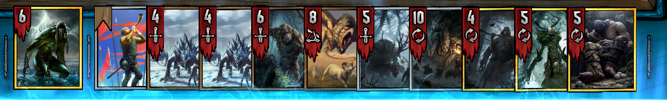Monster: In the mulligan the monster player should look for golds as he can, as well as tools to win round 1 such as Wild Hunt Hounds. The most important thing is to get rid of are “blank” cards and cards that are not going to help winning round 1 – Biting Frost / Foglets and Archgriffins.